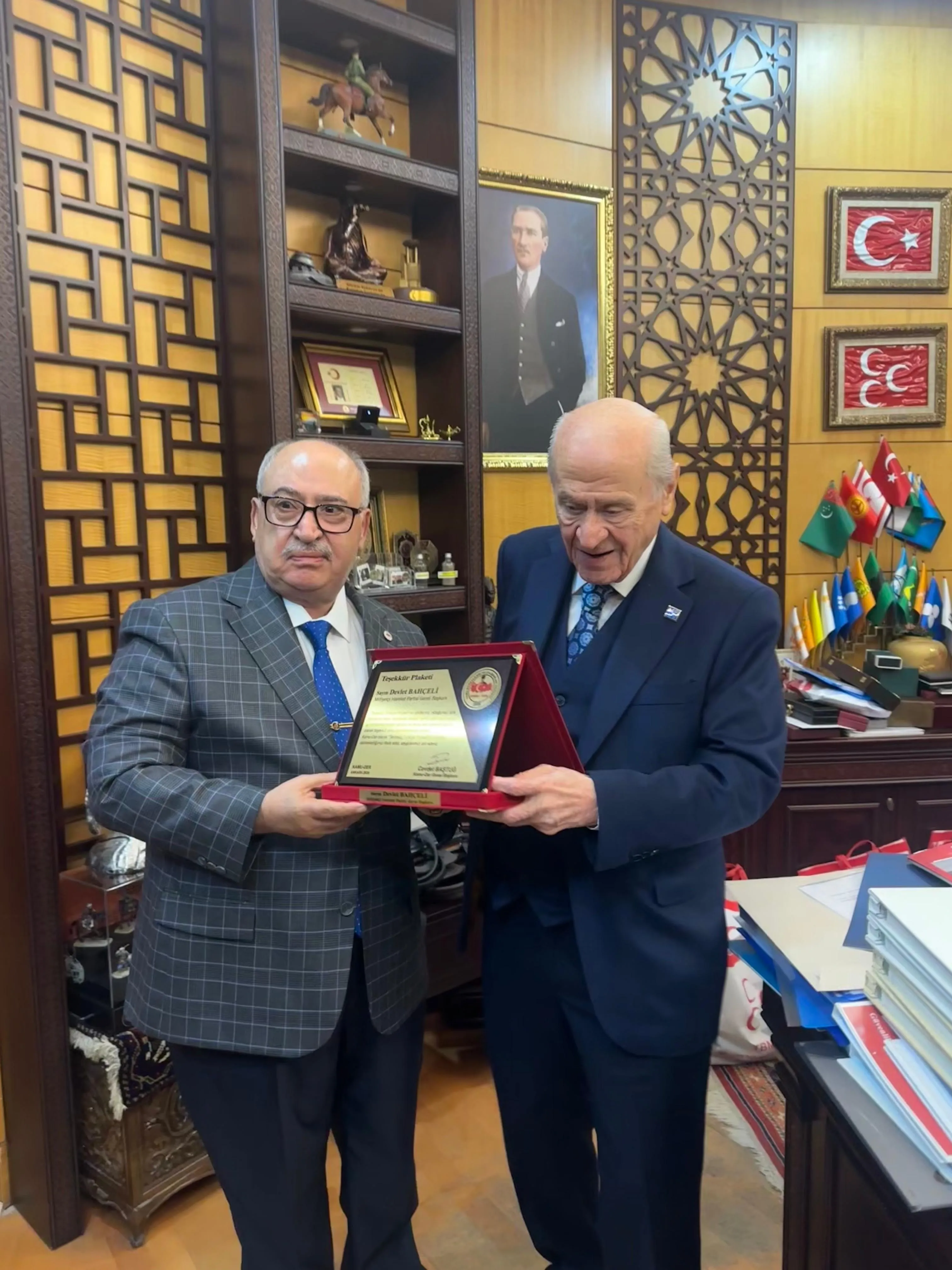 Ziyaret kapsamında, projeye vermiş olduğu adil, kararlı ve cesur destek nedeniyle Sayın Bahçeli’ye, şehit kamu görevlilerimiz adına teşekkür plaketi takdim edilmiştir.